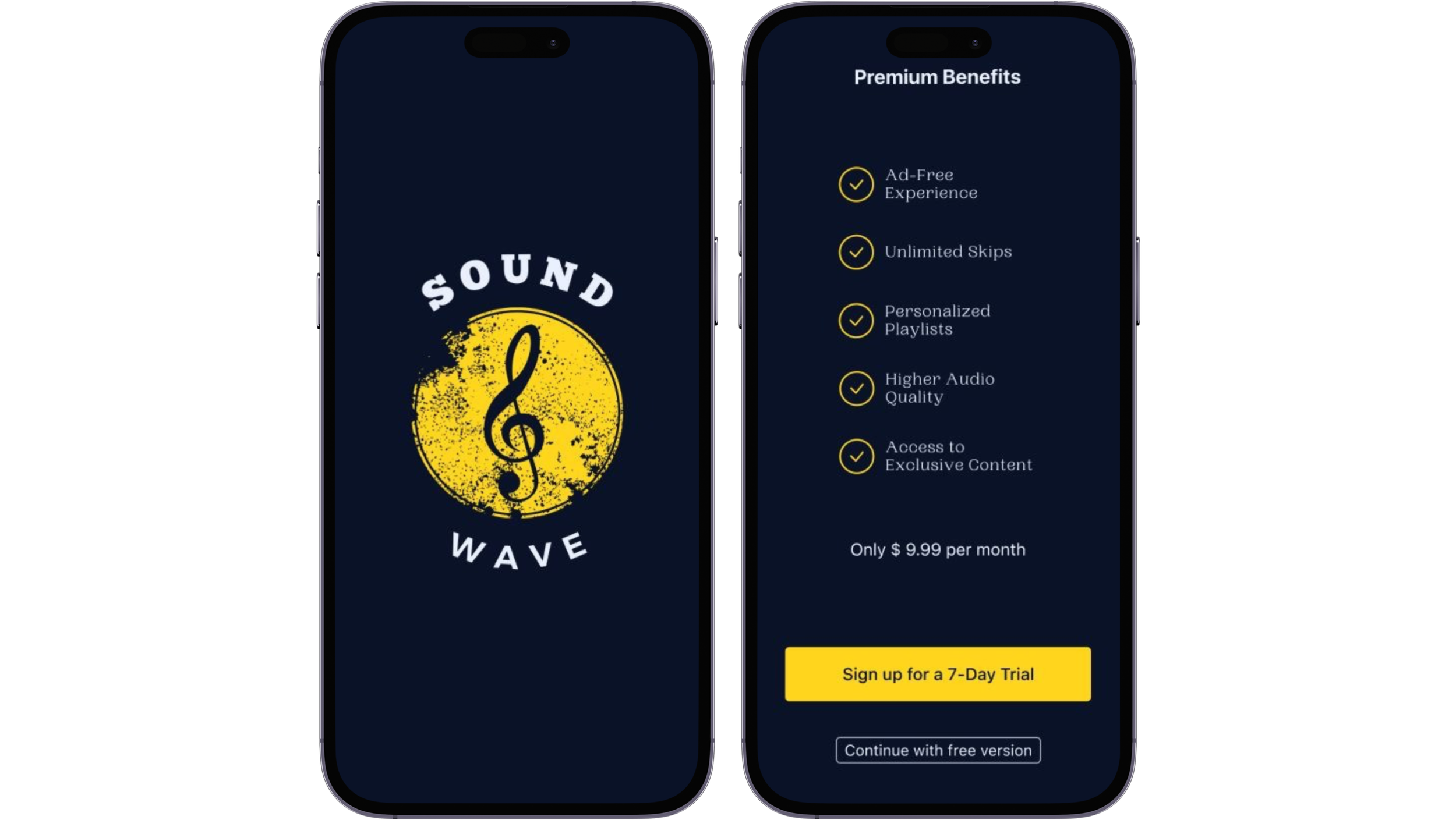 As a UX designer, I aimed to create a music app that generates revenue while providing an engaging user experience. With Sound Wave, my goal was to make it the go-to app that encourages premium subscriptions, balancing business success with user loyalty.