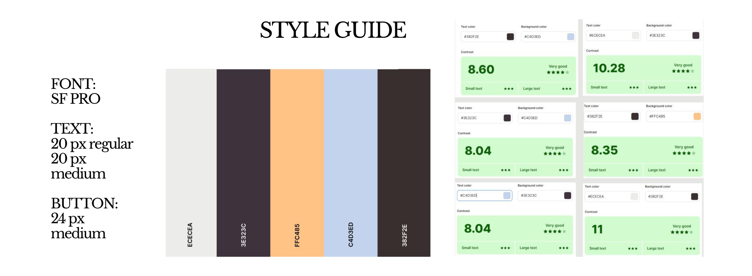 When developing the style guide, I aimed to create an inspiring and cozy environment that feels inviting to users.